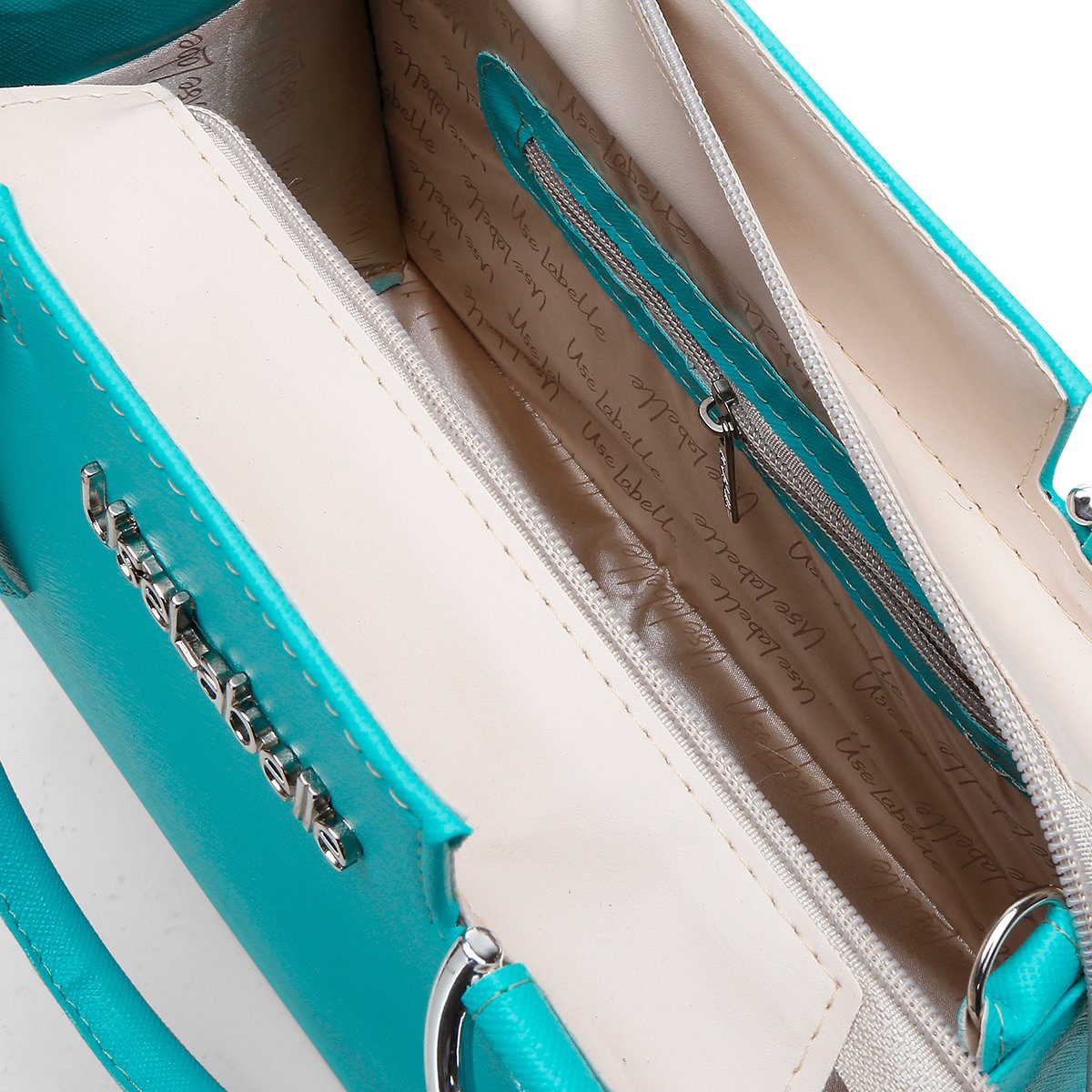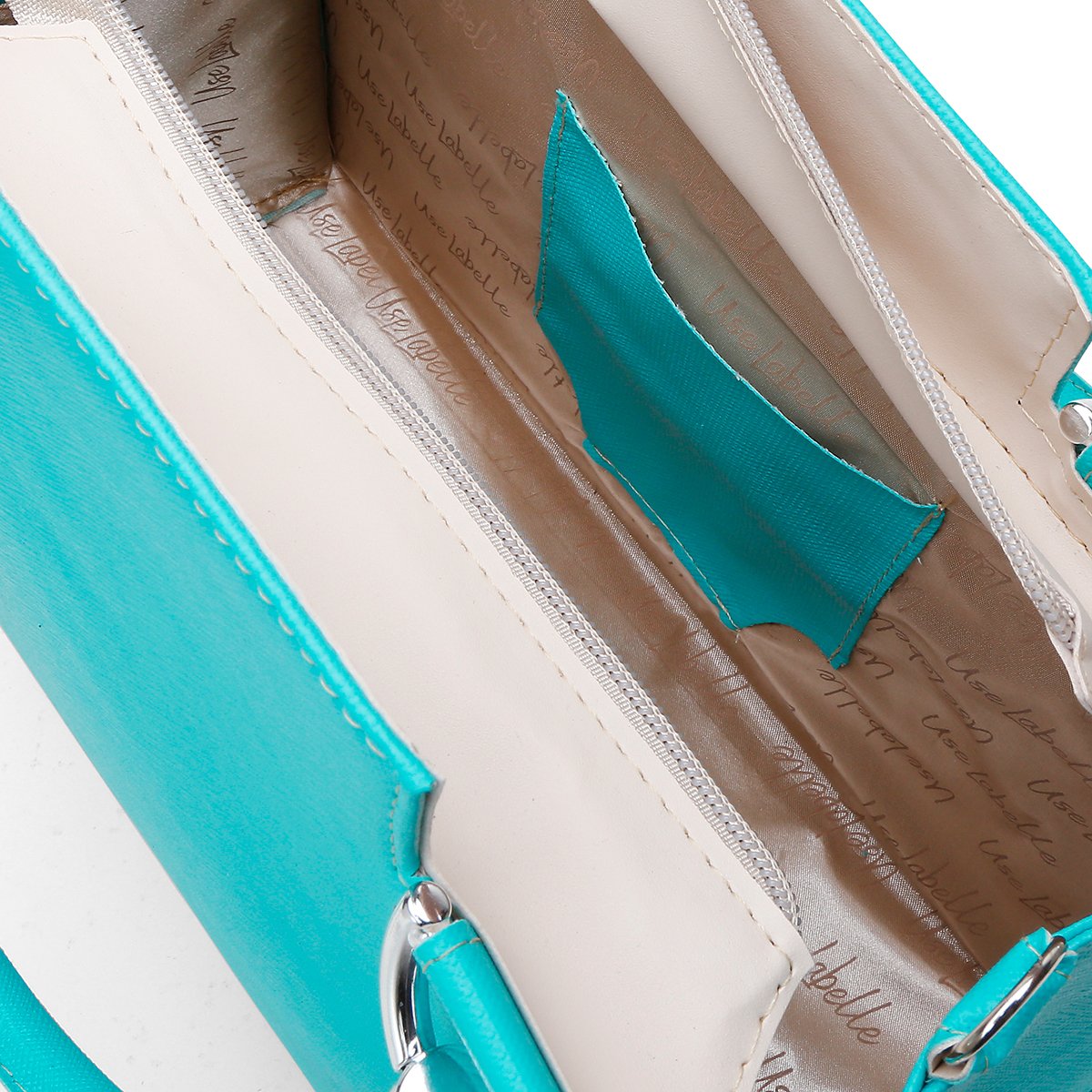 Bolsa Castelo tamanho medido em floather importado, com estampa em azul turqueza e amêndoa, possui um espaçoso compartimento interno, alça de mão e alça transversal e de ombro, carteira Soft luxo com separação notas e moedas.