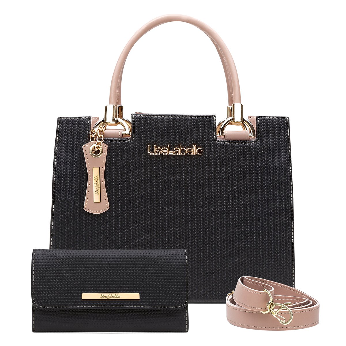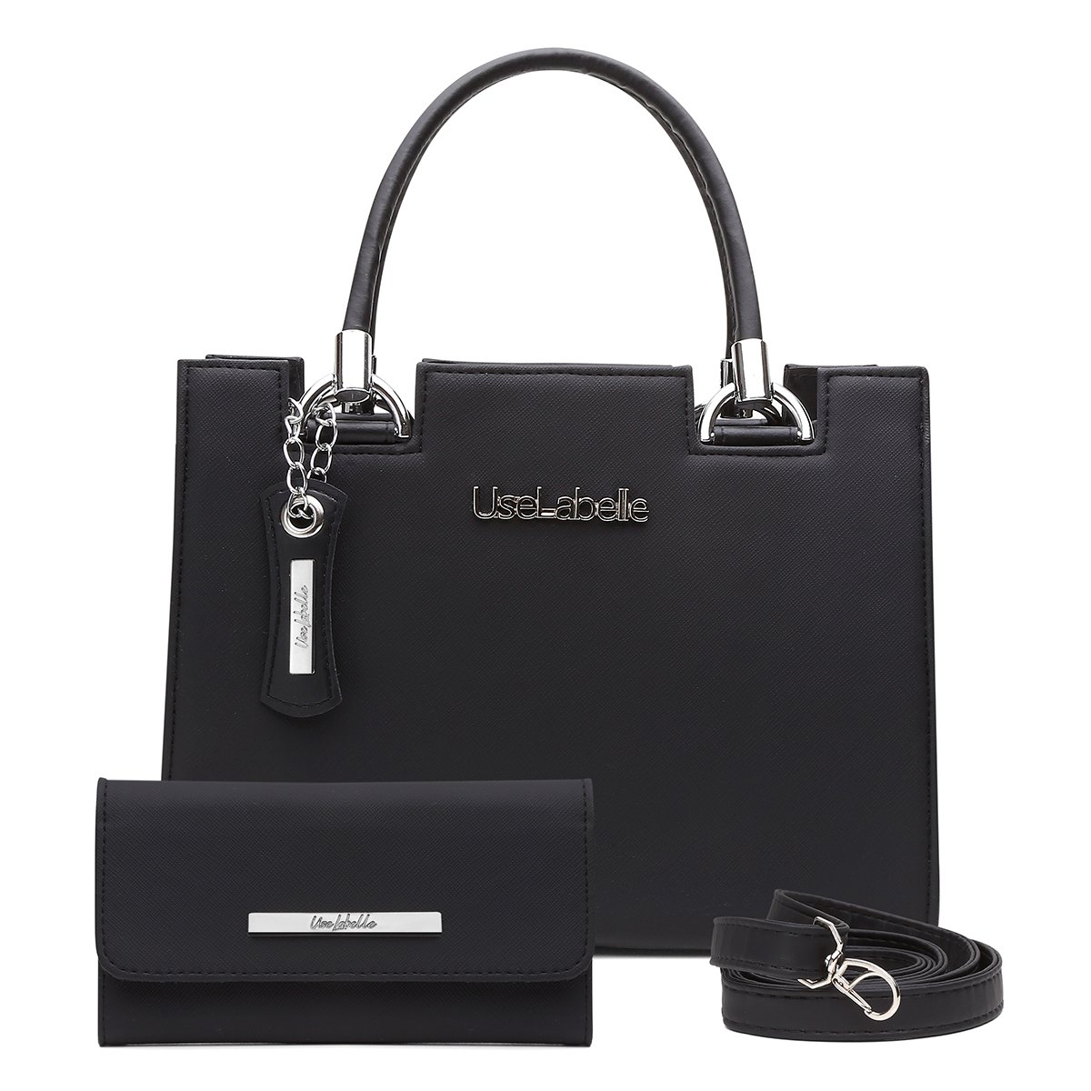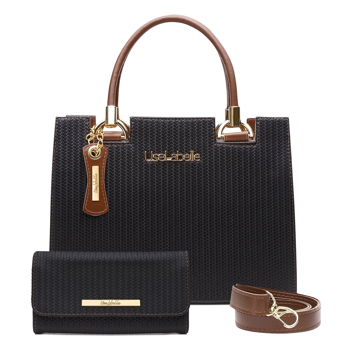 Kit Bolsa Castelo UseLabelle Preta Original + Carteira Soft Luxo + Alça Transversal e Ombro