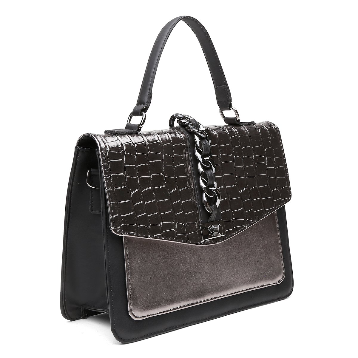METALIZADA – Produzida sob o tom metalizada, Santorini preto, croco metalizado. Metal fume.