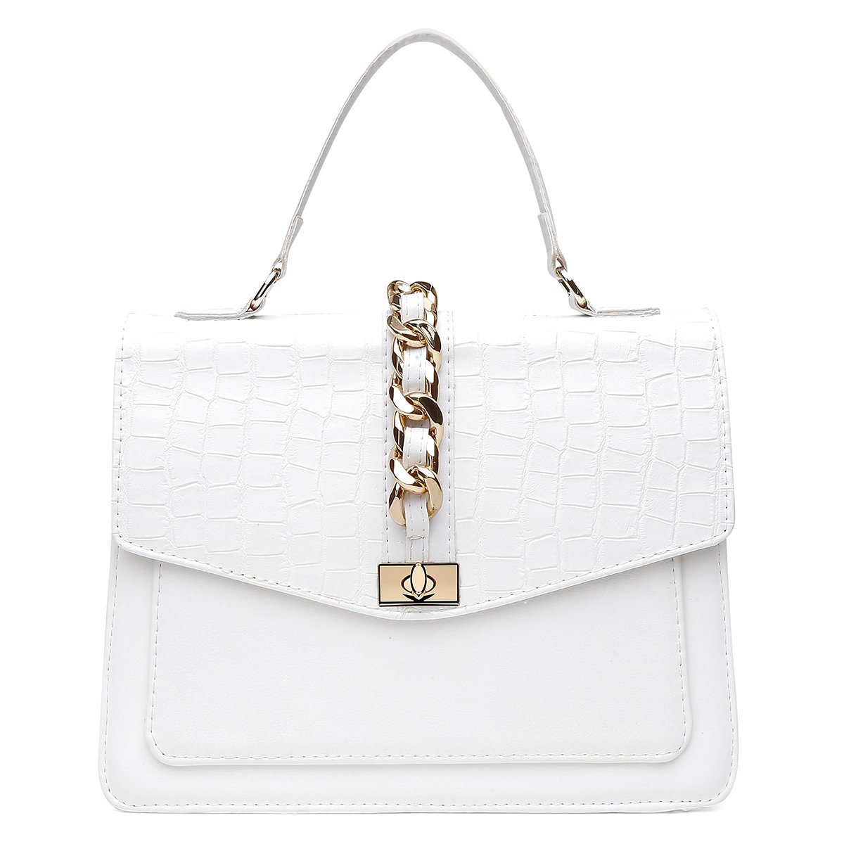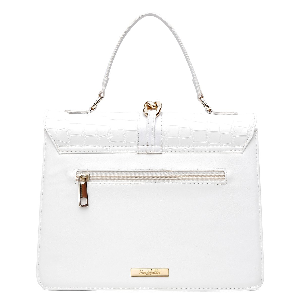 WHITE – Produzida sob o tom branco, Santorini branco, croco branco, napa flother branco. Metal dourado.