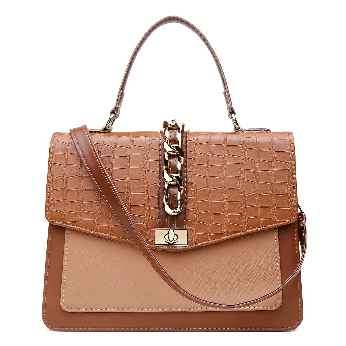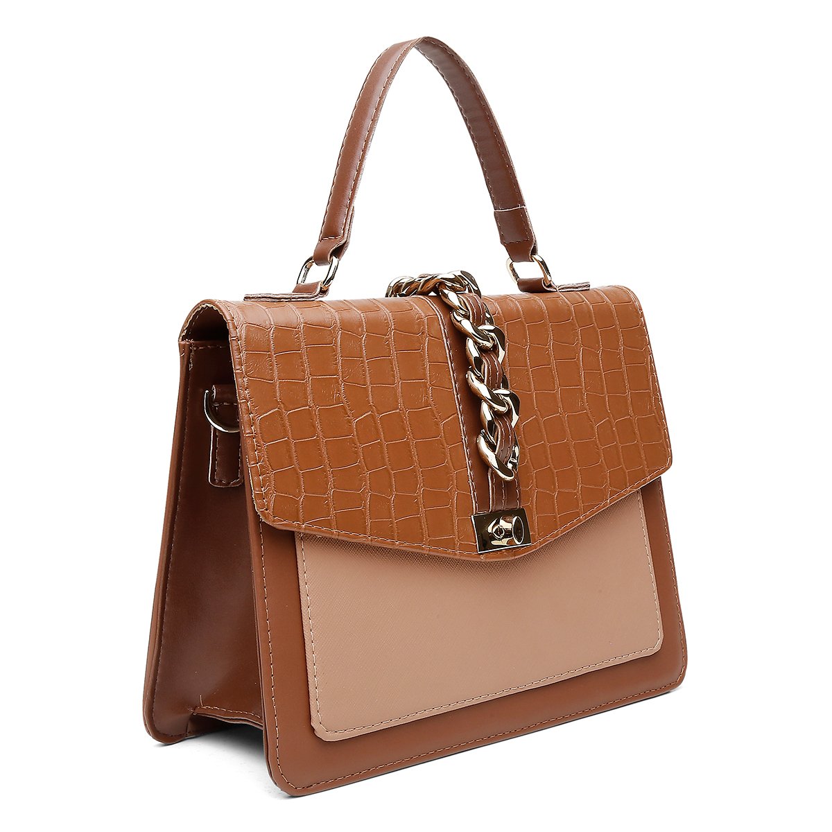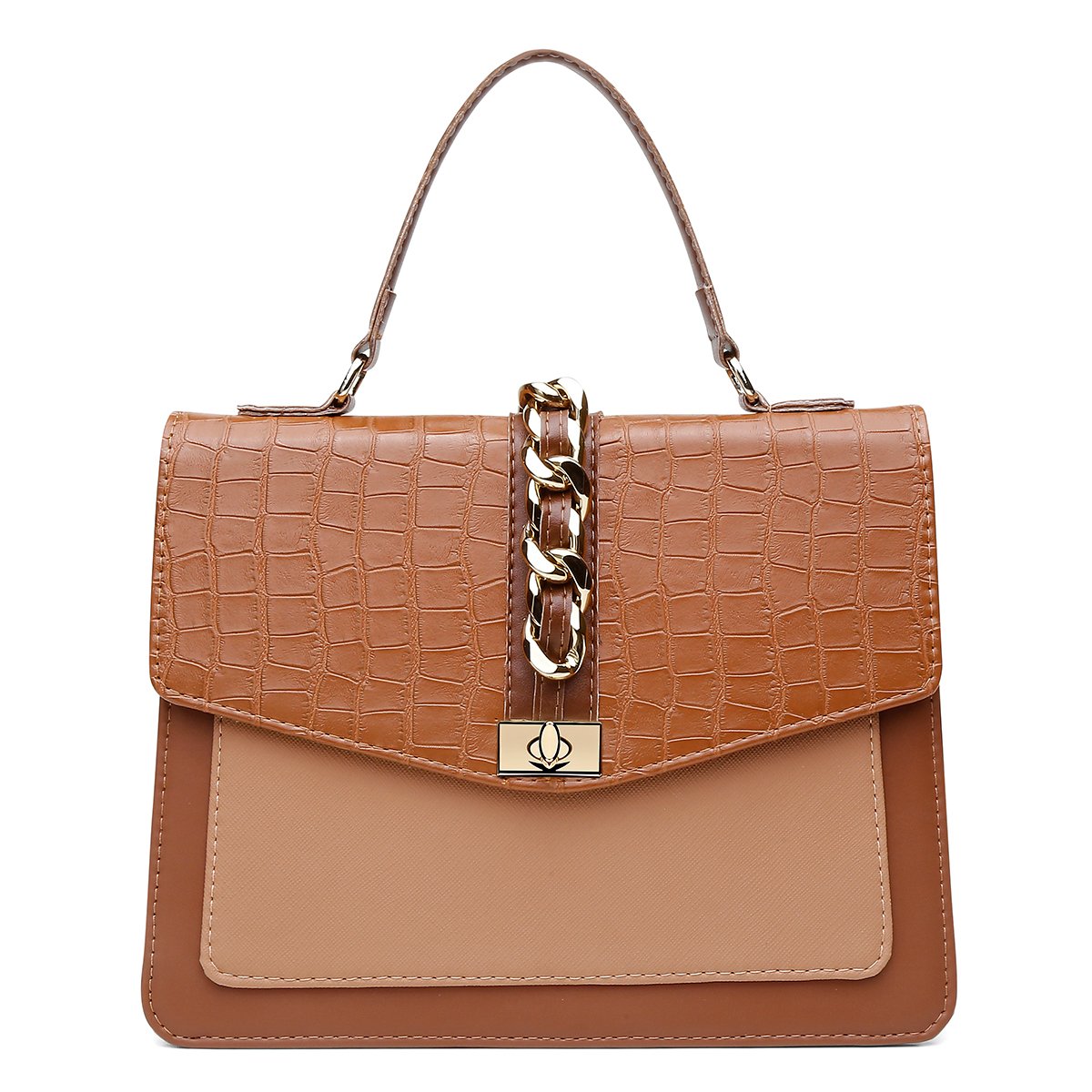 BROWN – Produzida sob o tom marrom, Santorini marrom, croco marrom, prada marrom. Metal dourado.
