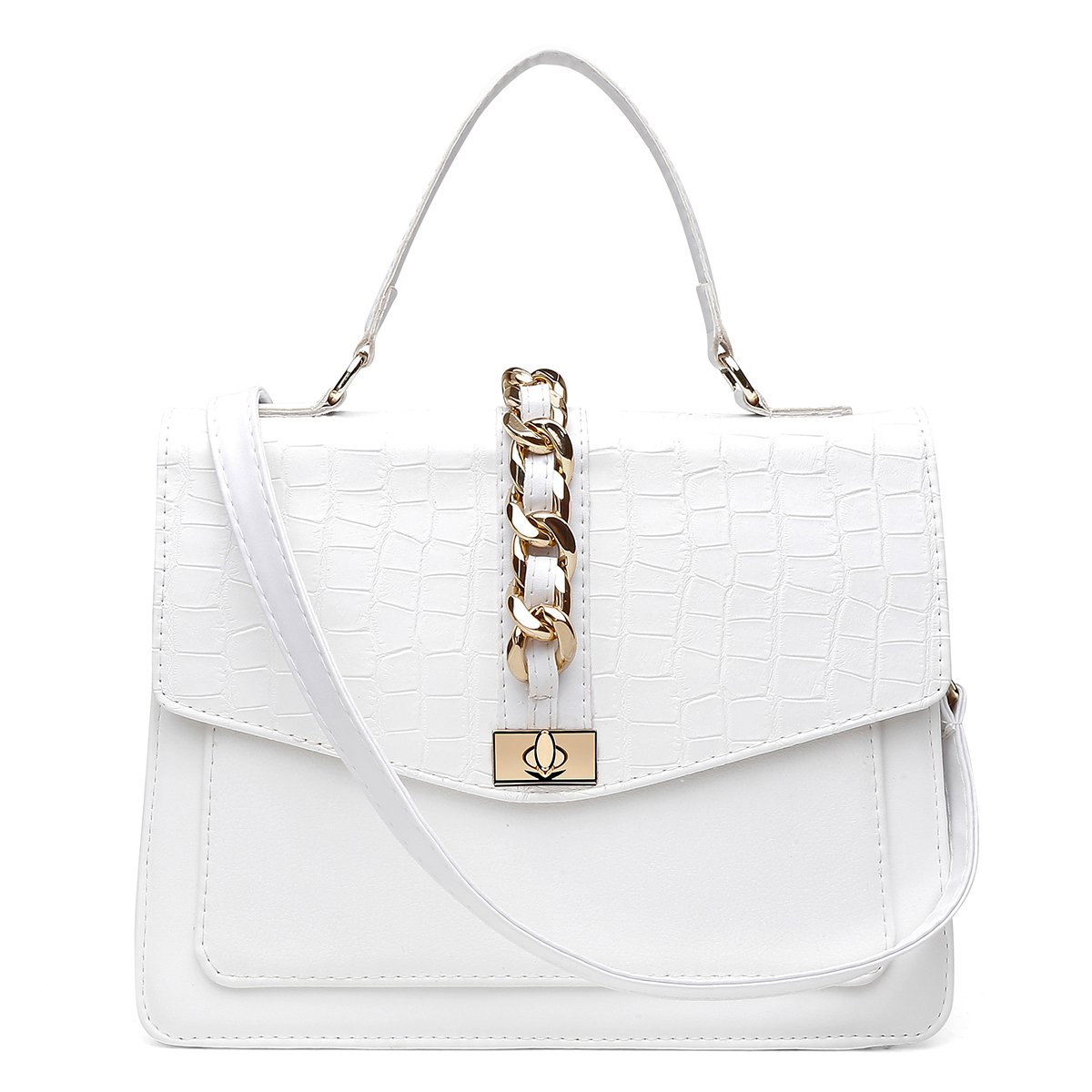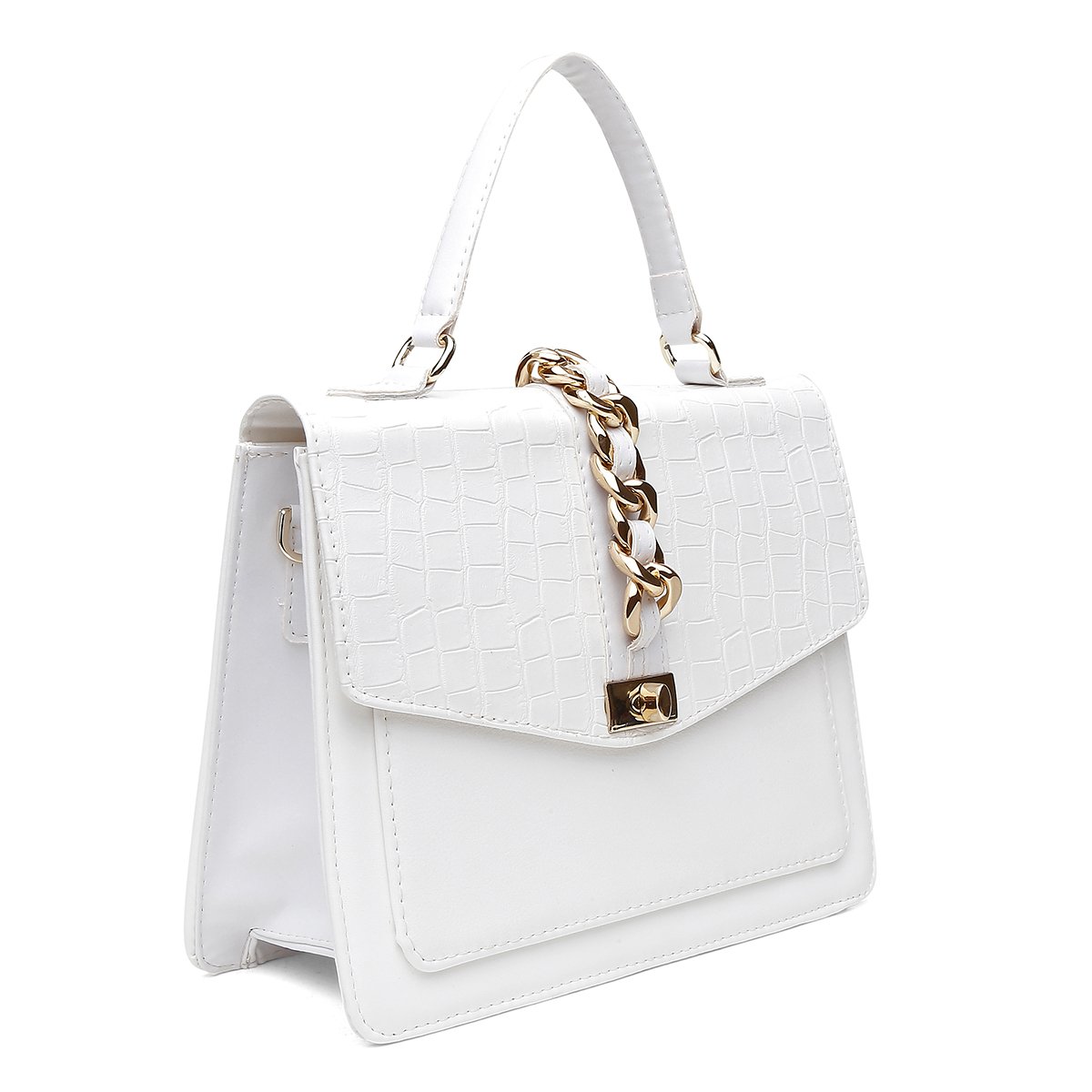 WHITE – Produzida sob o tom branco, Santorini branco, croco branco, napa flother branco. Metal dourado.
