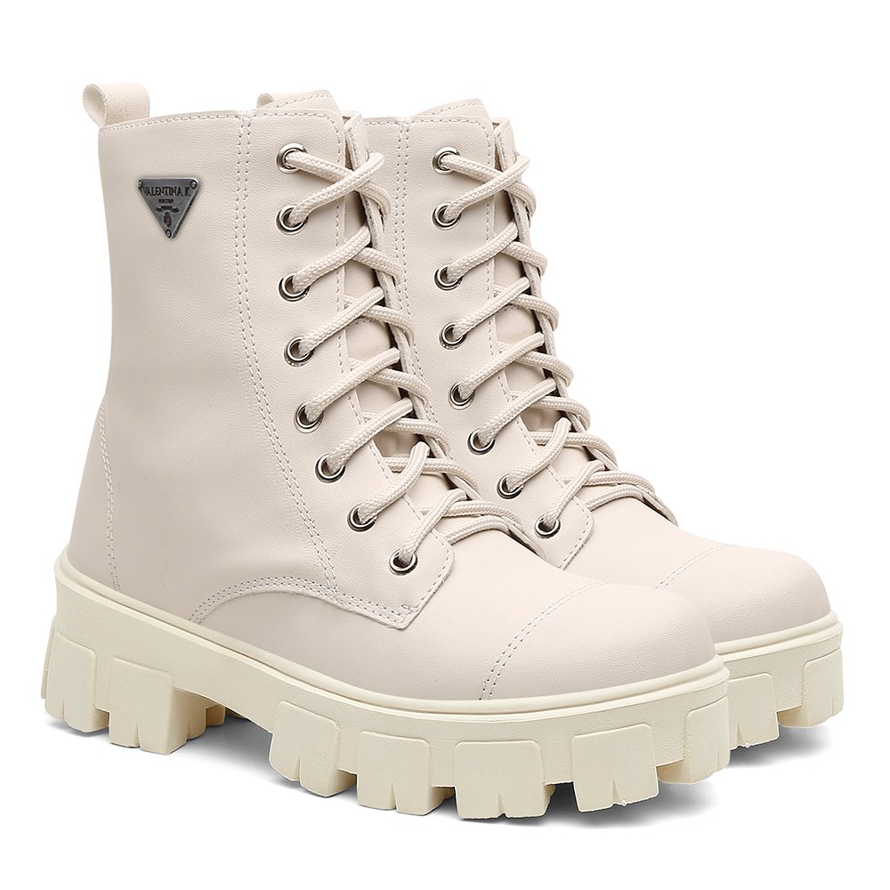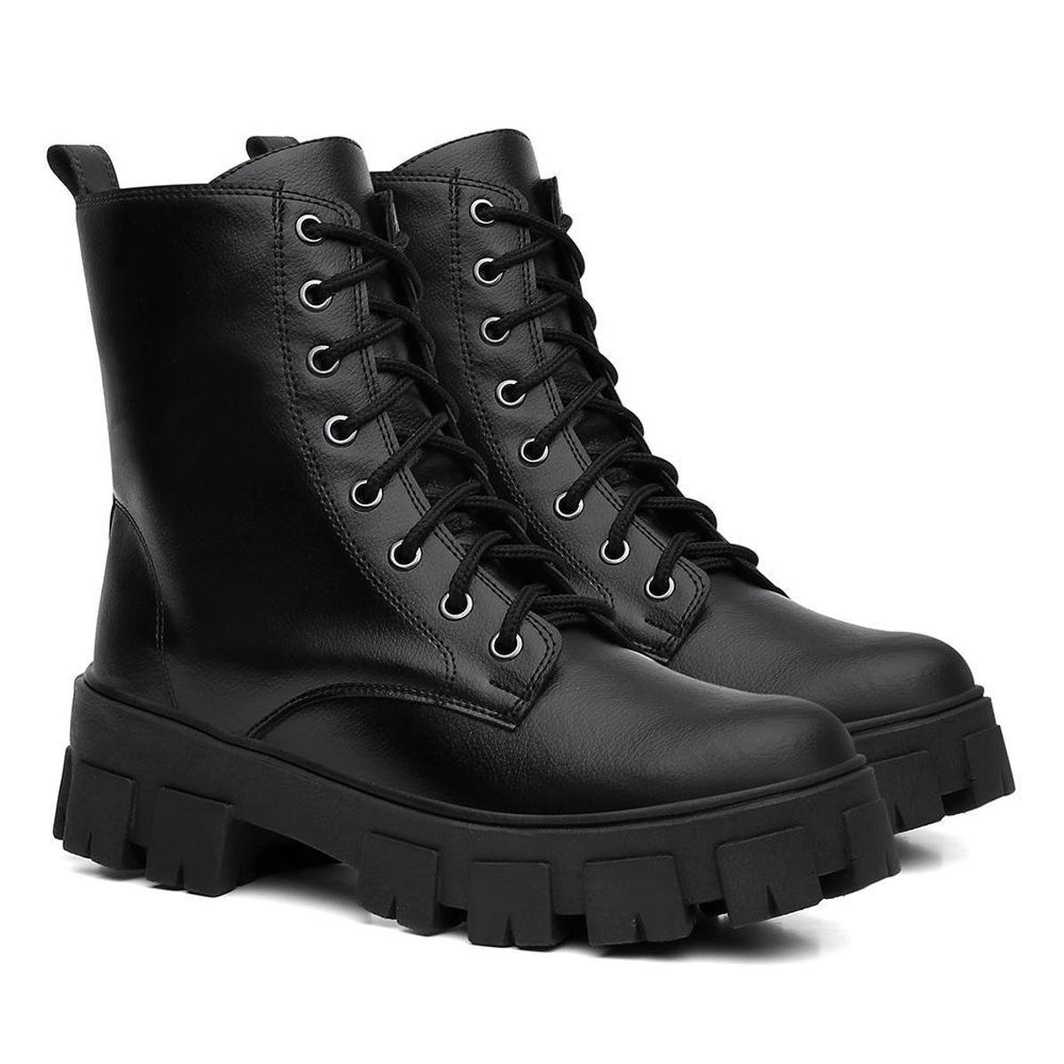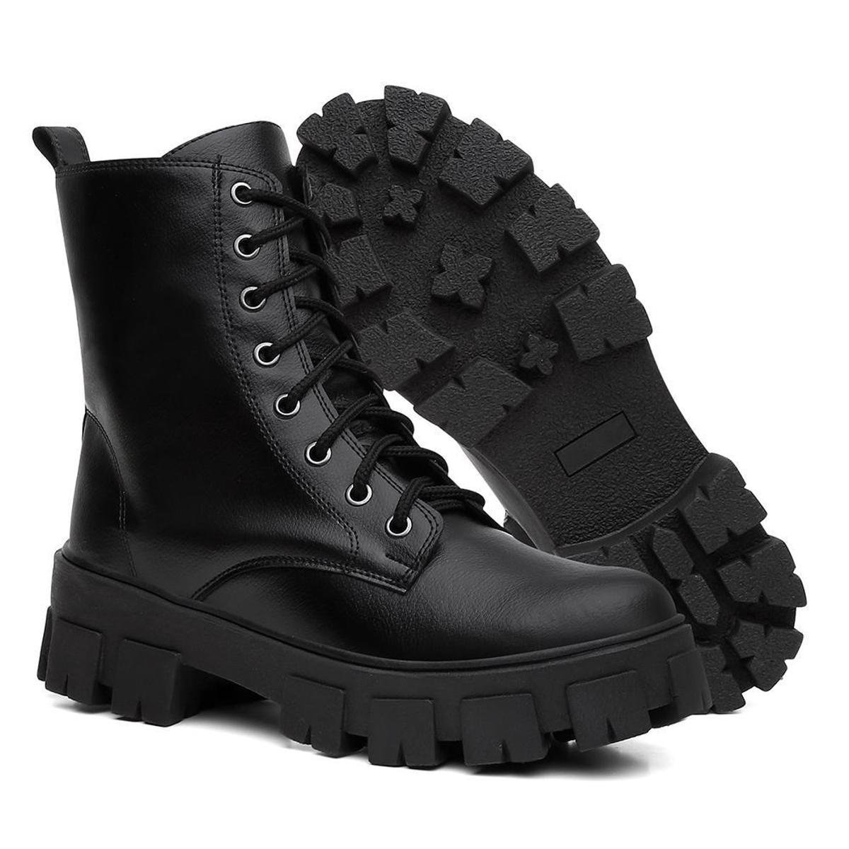 Bota Feminina Tipo Coturno Tratorada Cano Médio Blogueira