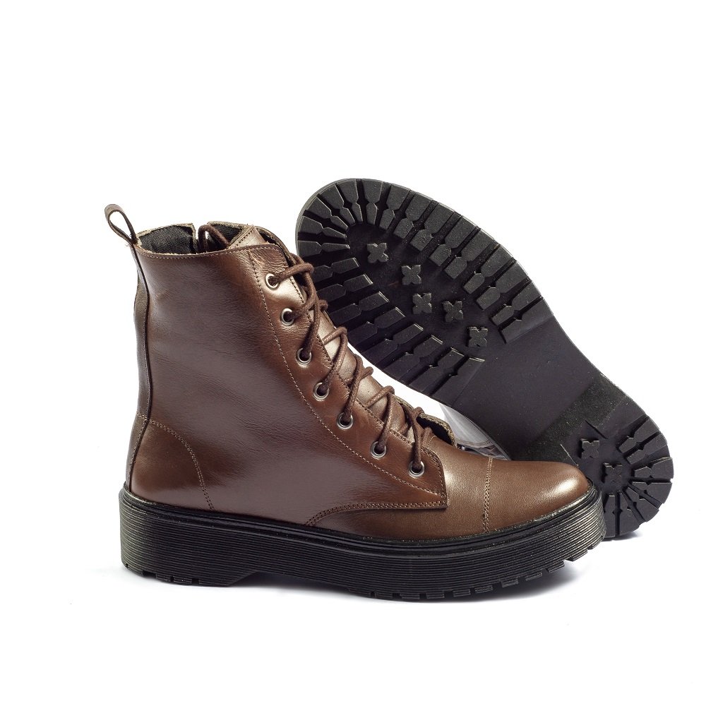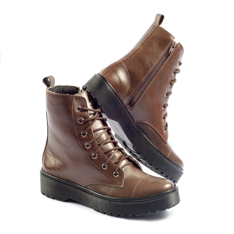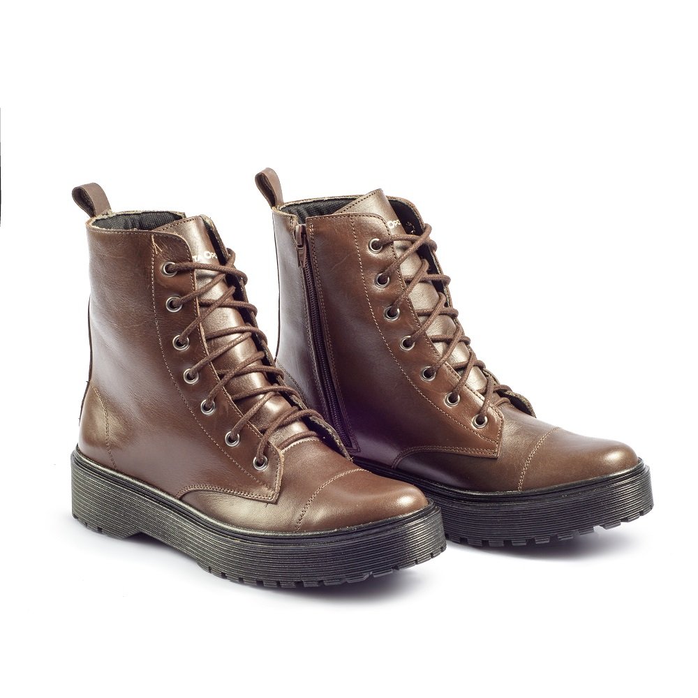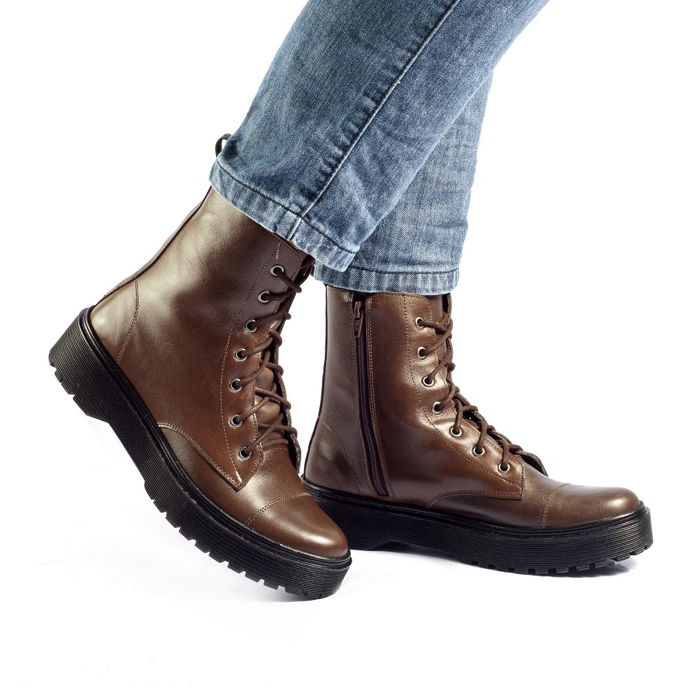 Coturno Feminino Cano Médio Couro Jade Café - Whisky - Preto