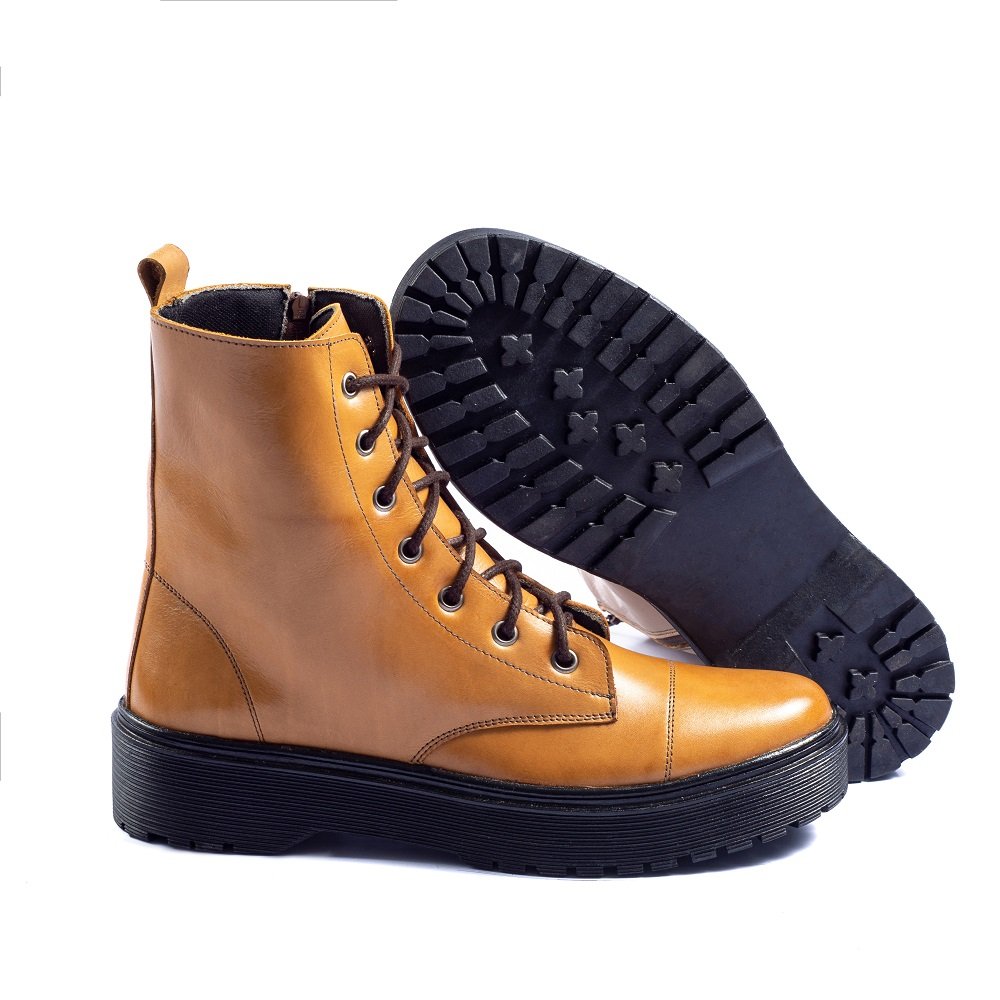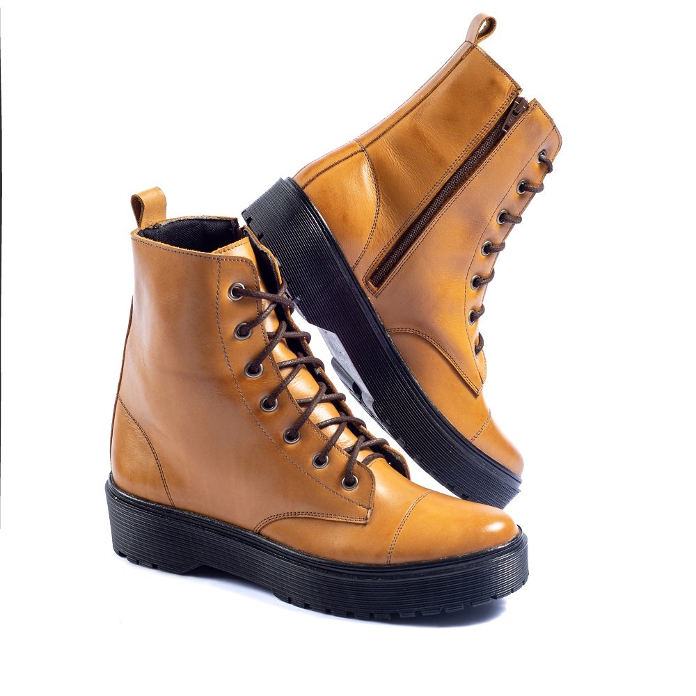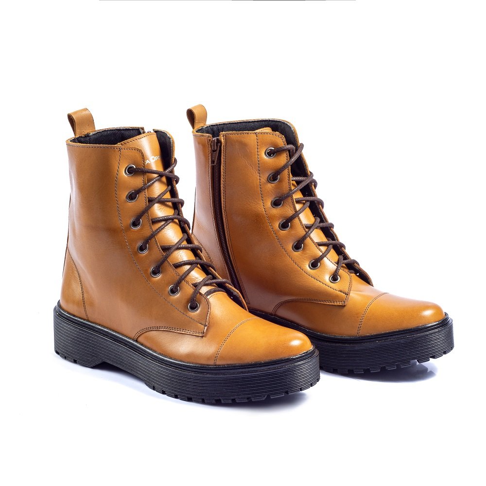 Coturno Feminino Cano Médio Couro Jade Café - Whisky - Preto