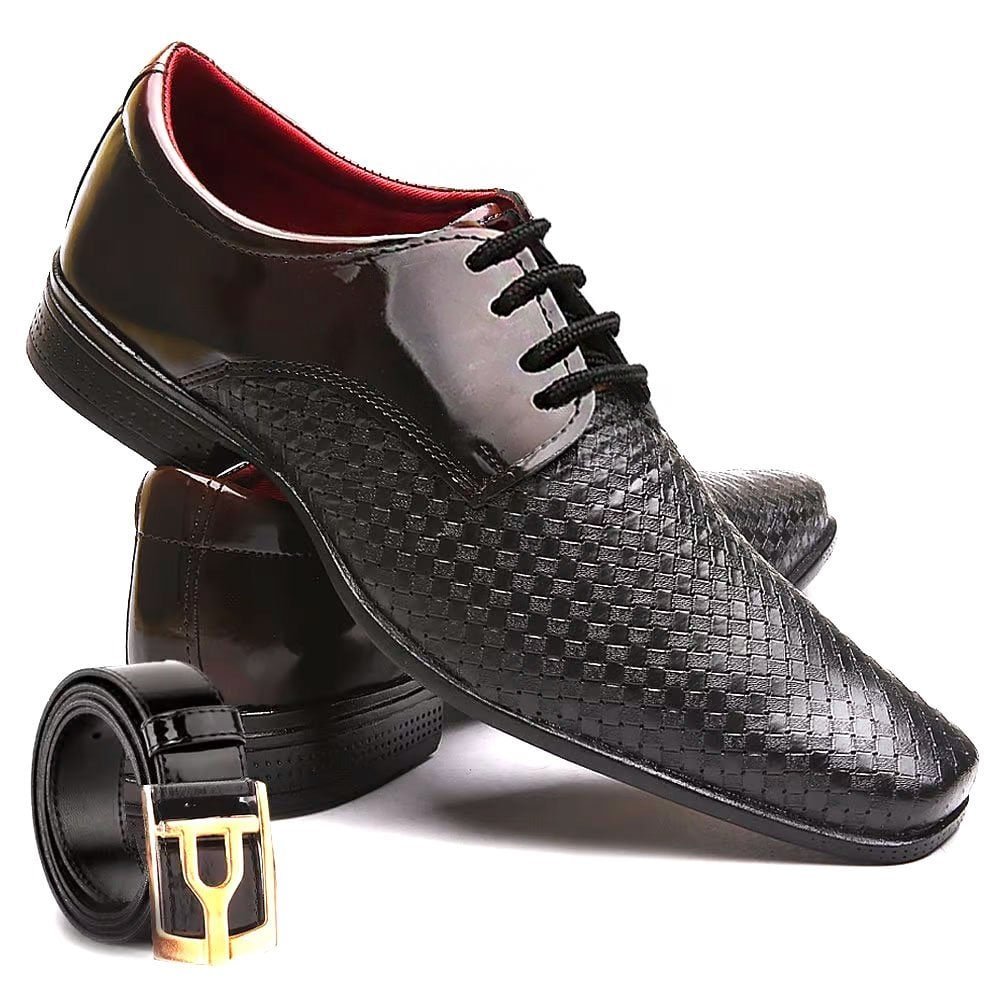 Kit Sapato Social Pierutti de Amarrar em Verniz + Cinto Pierutti