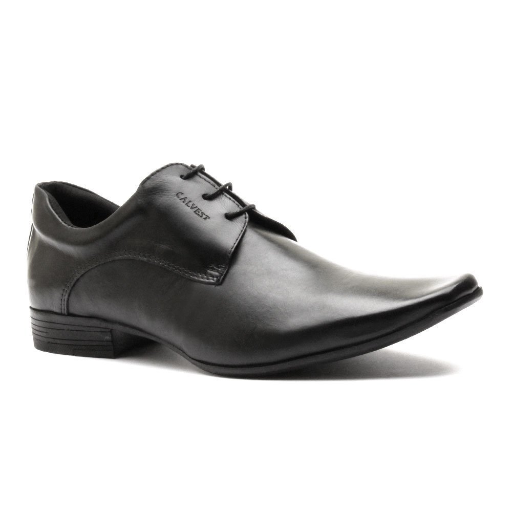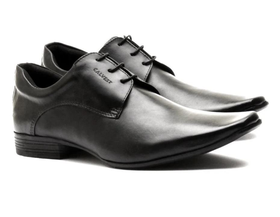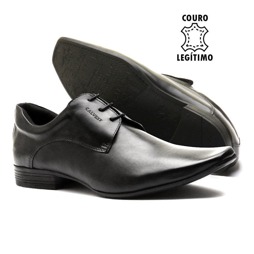 Sapato Social Calvest Couro Legítimo Preto Italiano Amarrar
